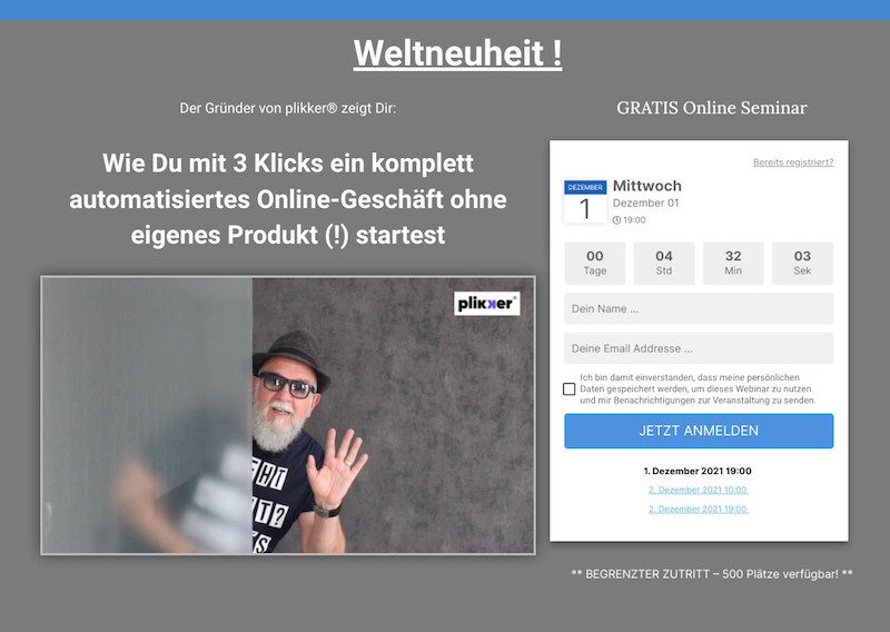 Jeweils gegen Ende des Webinars oder der Aufzeichnung wird der Link zur Salespage (Verkaufsseite) eingeblendet, mit der Aufforderung den Link zu klicken.